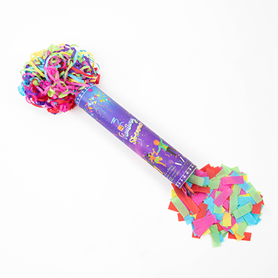 有兩頭(一邊為蜘蛛絲彩帶,一邊為彩色紙花),可分開使用
